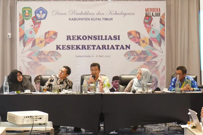 Klikkutim.com, SANGATTA – Dinas Pendidikan dan Kebudayaan (Disdikbud) Kutai Timur (Kutim) menggelar Rapat Rekonsiliasi atau Sinkronisasi Kesekretariatan di Room Emerald Floor 3 Hotel Mercure, Jumat (7/7/2023).