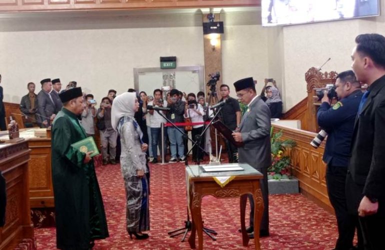 Dalam kesempatan itu, Hj Mulyana dilantik menggantikan Almarhum Asmawardi sesama politisi Partai Amanat Nasional (PAN) yang meninggal beberapa bulan lalu.