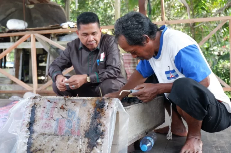 klikkutim.com – Ketua DPRD Kutai Timur Joni memuji dedikasi para peternak budidaya lebah madu kelulut yang berada di Desa Sepaso Induk, Kecamatan Bengalon. Madu kelulut atau madu klanceng merupakan madu khas yang dikembangkan para peternak lebah setempat.