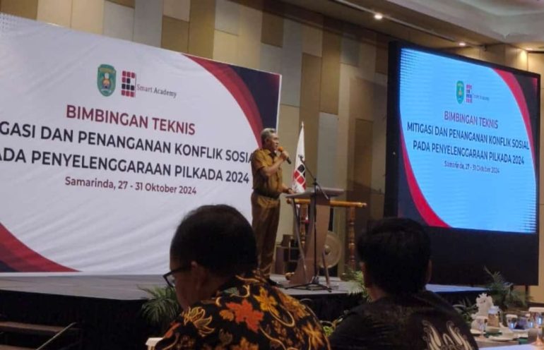 Pemerintah Kabupaten Kutai Timur (Pemkab Kutim) menggelar Bimbingan Teknis (Bimtek) dengan tema “Mitigasi dan Penanganan Konflik Sosial pada Penyelenggaraan Pilkada 2024” sebagai upaya menjaga kondusivitas jelang Pilkada Serentak 2024. Kegiatan yang berlangsung dari 27 hingga 31 Oktober 2024 di Hotel Harris Samarinda ini dibuka secara resmi oleh Sekretaris Kabupaten (Seskab) Kutim, Rizali Hadi, pada Senin (28/10/2024).