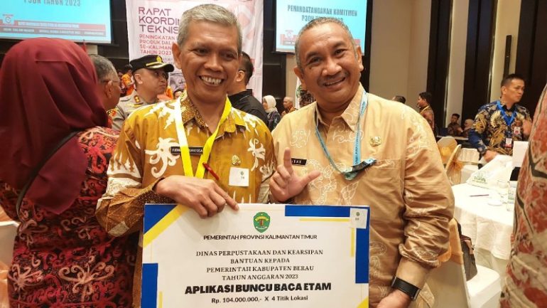 KLIKKUTIM.com, BERAU – Masih dalam rangkaian kegiatan Kunjungan Gubernur Kalimantan Timur ke Utara, DPK Kaltim turut partisipatif dalam penyaluran sarpras yang dapat dipergunakan oleh masyarakat umum. Salah satunya melalui penyaluran unit Buncu Baca Etam (BBE) di Kabupaten Berau, pada Rabu (2/8/2023).